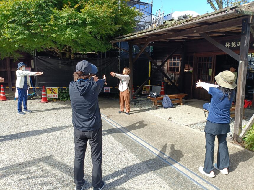 集合時間は朝の9時。まだあたたまっていない体がよく伸びます。