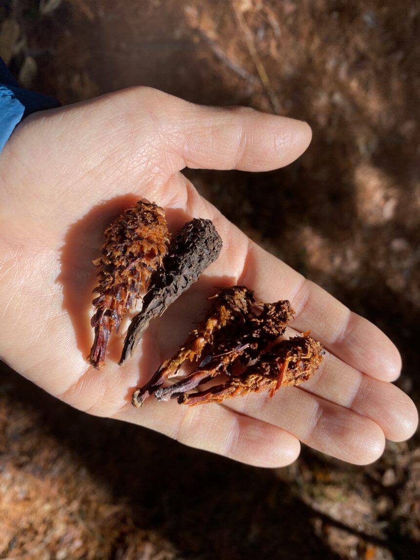 この日は残念ながら足跡探しは出来ませんでしたが、代わりにリスが食べたあとの松ぼっくり