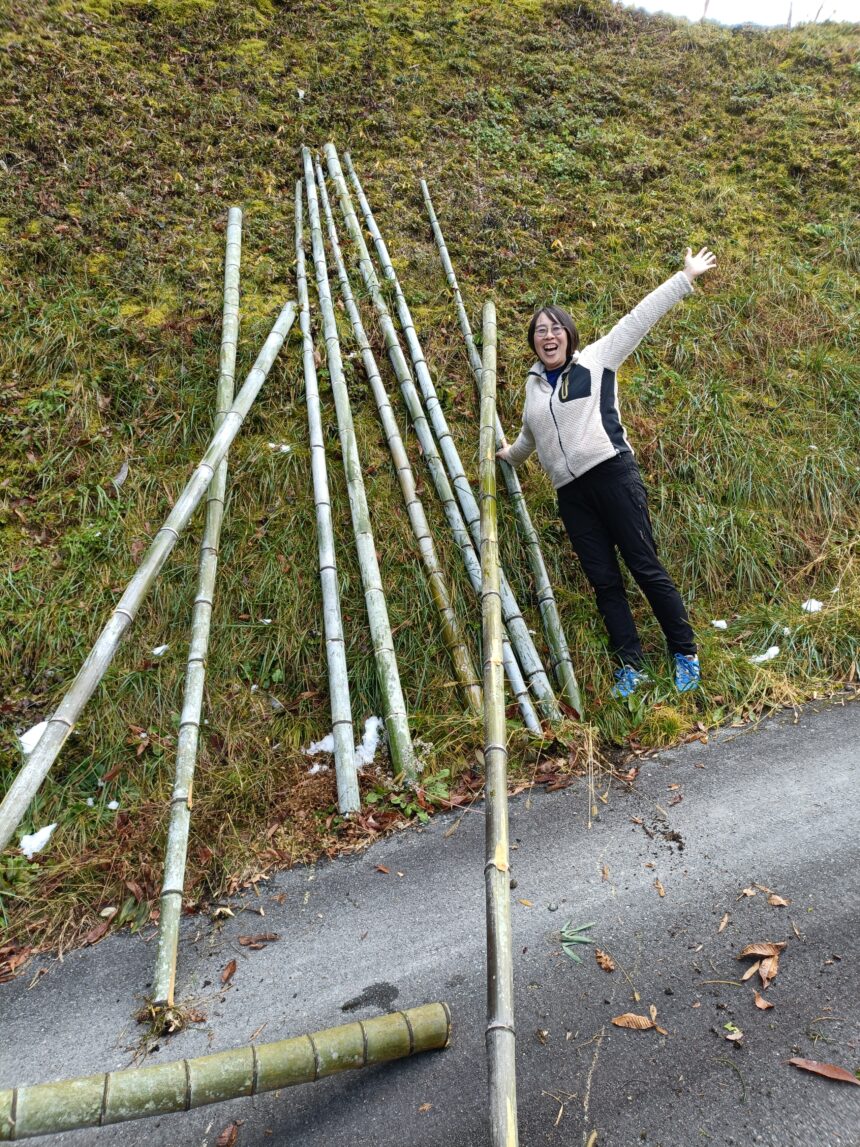 えっちらおっちらと、竹を野原のミュージアムまで運び終わり、