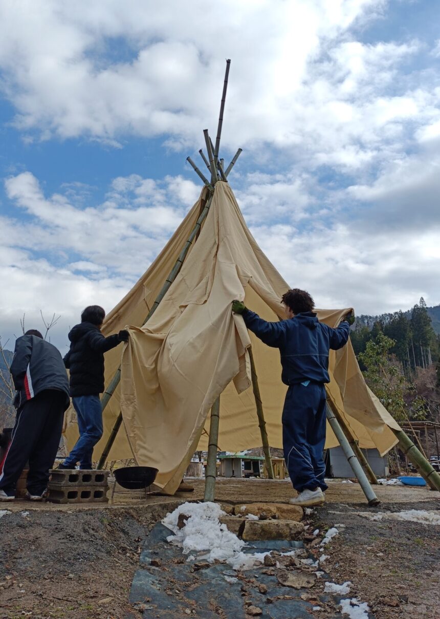 さあ、ここからが今日のメインイベント【ティピ作り】!