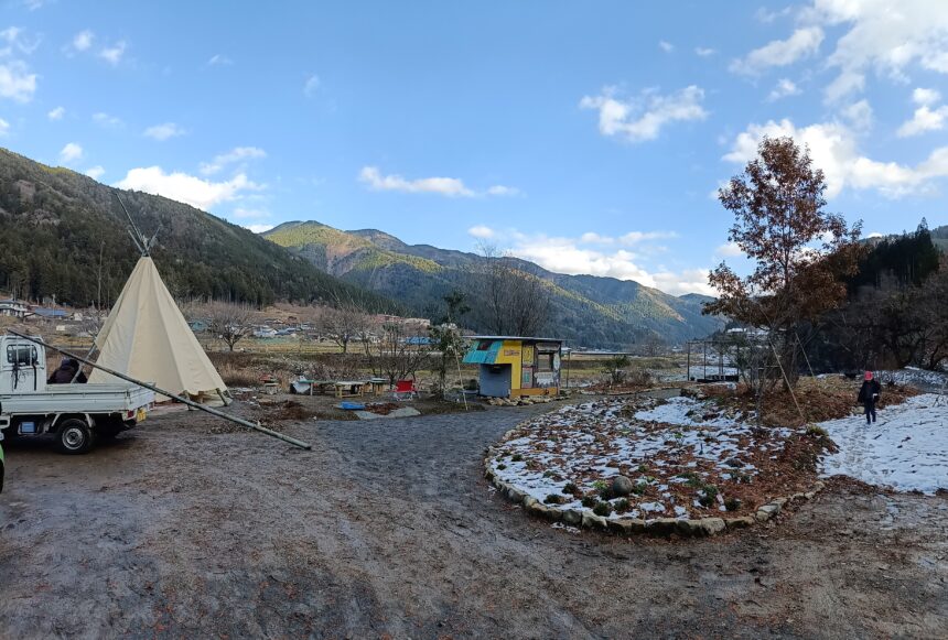 新しくできたティピと、春に芽吹くであろうフラワーガーデンと。