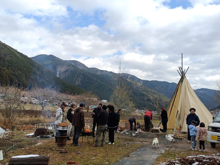 ここに集まった人全員、ティピを建てる体験はこの日が初めて!