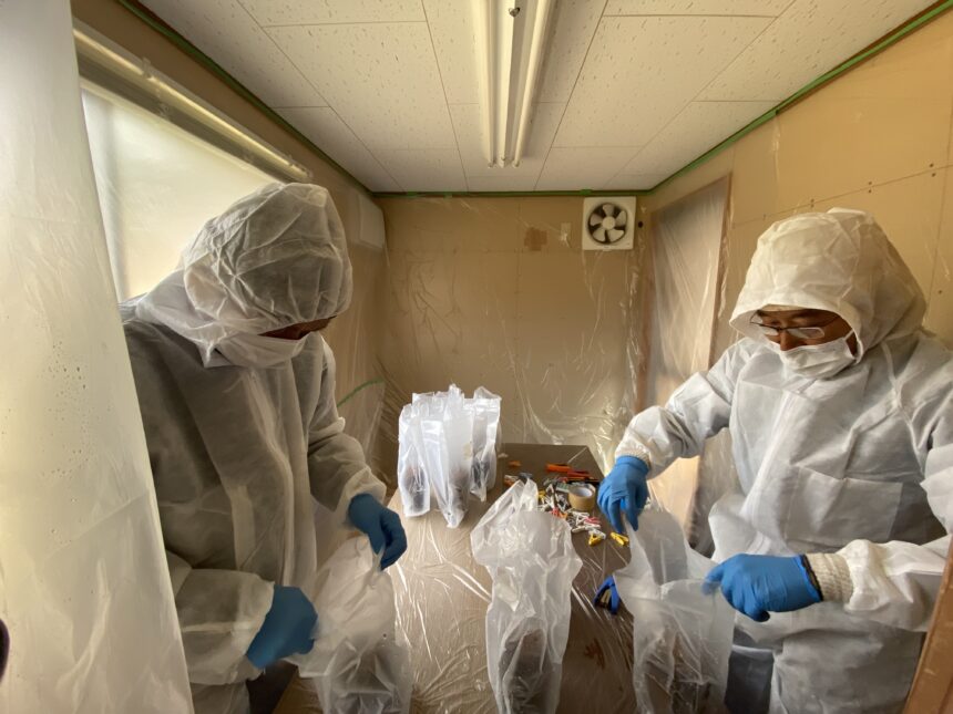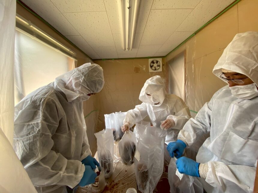 翌日、場所を変えていよいよ舞茸の植菌作業🪵🥄