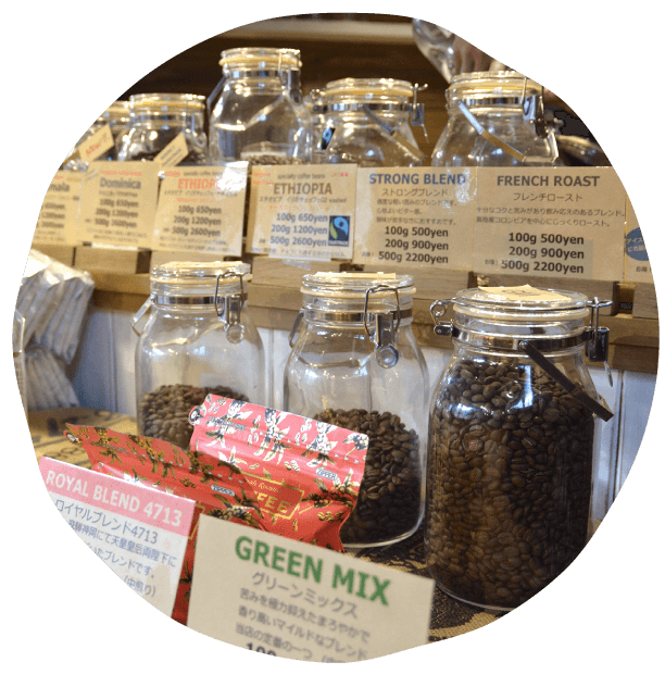 そんなとき、目の前に手ごろな値段の中古の大型焙煎機が売り出され、「緑の館」にはそんな大きな機械を置くスペースがないし、自分で店をやりたいって気持ちもあったんで、焙煎機を置き、ゆっくりコーヒー豆を選んでもらえる店を作ったんです。
