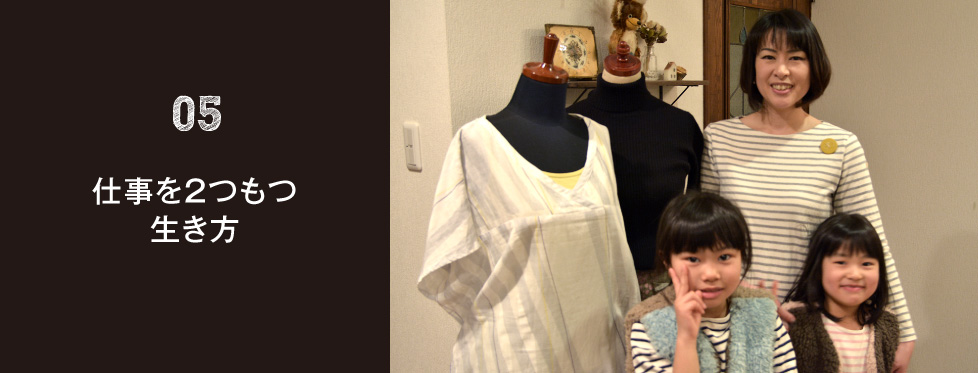 朝、2人の子どもを保育園と小学校に送り出すと、午前中は主人の実家の家業を手伝いに行き、ハンドメイドの仕事をするのは午後から。週2回通っている洋裁教室に行ったときにしています。